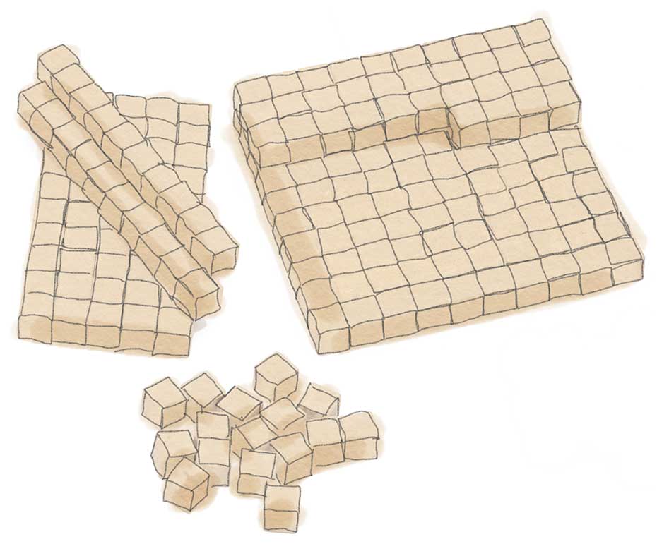 Das geradezu mechanische Abarbeiten von Teilschritten fördert kaum Einsichten in arithmetische Zusammenhänge. Griffiges Material und grafische Darstellungsformen der Bündelung im Dezimalsystem müssen im Mathematikunterricht vorrangig behandelt werden.